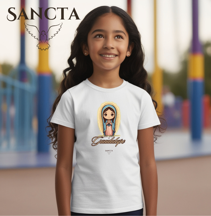 Apresentamos a nova linha especial infantil e adulta Sancta! Inspirada na pureza e na alegria dos pequenos, nossa coleção traz estampas que refletem a fé e a inocência, combinadas com o conforto que as crianças e adultos merecem. Feitas com tecidos 100% algoodão, designs delicados e exclusivos, nossas camisetas foram criadas para acompanhar cada momento especial da sua familia , sempre com muita leveza e carinho. Descubra a beleza de vestir a fé desde a infância e fortalecer o testemunho, a devoção e o amor a Deus, A virgem Maria e todos os Santos!